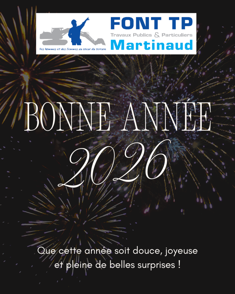 Toute l’équipe de FONT TRAVAUX PUBLICS MARTINAUD vous adresse ses vœux les plus sincères pour 2026 !