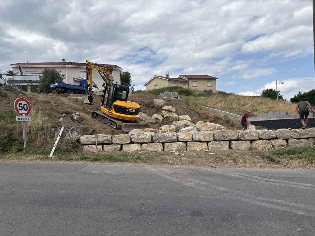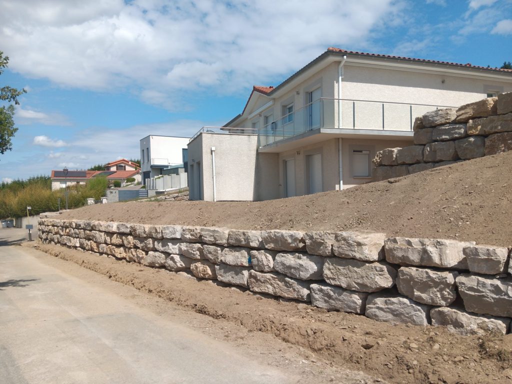 Nous réalisons également vos aménagements extérieurs : soutènements (enrochements calibrés ou non, murs en L, gabions…)