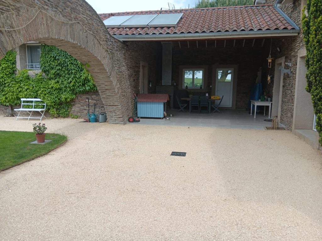 4) Travaux d’aménagements extérieurs, réalisation de la cour et des accès. Travaux réalisés en Balthazard par notre entreprise. Travaux en enrobé à chaud réalisés par notre partenaire.